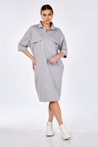 Платье полуприлегающего силуэта из трикотажного полотна. На спинке в среднем шве обработан вырез капелька с навесной петлей, обработана потайная молния и шлица. Ассиметричный верх выполнен по правому плечу из мягкой сетки. На левом плече сьемный элемент в виде двойного банта.