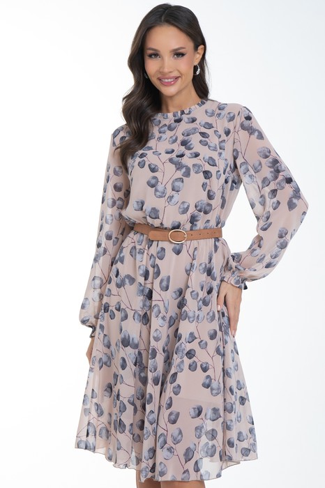 Восхищайте и удивляйте! Элегантное  шифоновое платье, подчеркивающее женственность - отличное решение на каждый день или на праздник для современной стильной женщины. Шикарная модель с пышными красивыми рукавами выполнена из высококачественного шифона с авторским цветочным принтом. Очаровательное свободное платье с юбкой полу-солнце создаст нежный воздушный образ! Круглая горловина оформлена рюшей с застежкой на пуговицу на спине. Платье имеет идеальную посадку благодаря индивидуальной корректировки длины за счет мягкой комфортной резинки на талии. По переду сделаны вытачки на грудь. Платье отрезное по талии. Рукава втачные длинные, снизу подогнуты и сосборены на резинку. Платье с подкладом, притачным по горловине и пройме. Поставляется без ремня в комплекте, ремень на фото как пример образа.