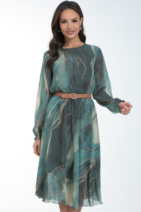 Восхищайте и удивляйте! Элегантное  шифоновое платье, подчеркивающее женственность - отличное решение на каждый день или на праздник для современной стильной женщины. Шикарная модель с пышными красивыми рукавами выполнена из высококачественного шифона с дизайнерским принтом. Очаровательное свободное платье с юбкой полу-солнце создаст нежный воздушный образ! Круглая горловина с застежкой на пуговицу на спине. Платье имеет идеальную посадку благодаря индивидуальной корректировки длины за счет мягкой комфортной резинки на талии. По переду сделаны вытачки на грудь. Платье отрезное по талии. Рукава втачные длинные, снизу подогнуты и сосборены на резинку. Платье с подкладом, притачным по горловине и пройме. Поставляется без ремня в комплекте, ремень на фото как пример образа.