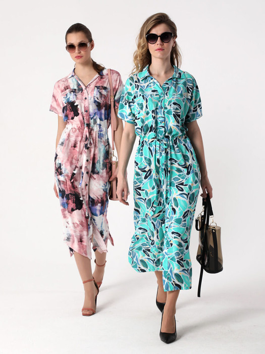 Длинное платье из струящейся 100% вискозы (производство  Турция) прямого силуэта с цельнокроеными короткими рукавами - это стильный предмет гардероба каждой женщины. Застежка - на петли и пуговицы. Две пары карманов: небольшие нагрудные и удобно расположенные в боковых швах. Линию талии подчеркивает кулиска с эластичной тесьмой по спинке. Фантазируйте с обувью и аксессуарами, и это лаконичное по стилю платье-рубашка позволит Вам превосходно выглядеть как на прогулке, на отдыхе, так и в офисе.