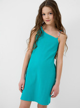Платье из легкой хлопковой ткани, слегка приталенного силуэта, расклешенное книзу. Рукав втачной, длинный, на манжете из отделочной ткани, в верхней части манжета рукав подогнут с наплывом. Горловина отделана обтачкой из эластичной ткани. Полочка украшена шелкографией. Ткань хорошо пропускает воздух.