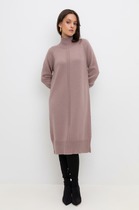 Платье женское прилегающего силуэта, длиной ниже колен. На спинке застежка-молния, в нижней части среднего шва шлица. Рукава длинные.