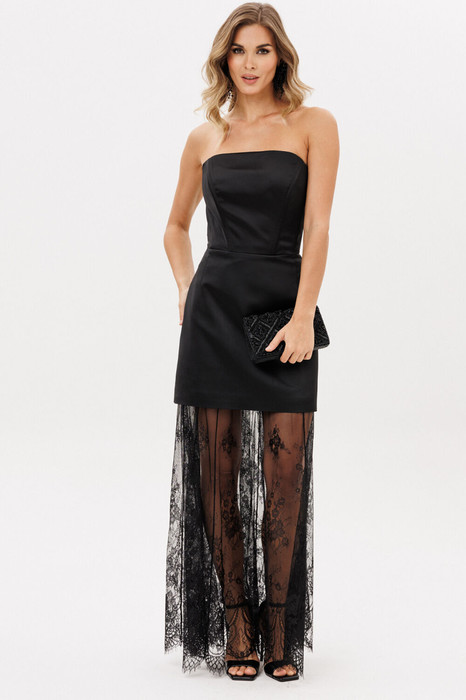 Платье выполнено из плотного атласа. Платье приталенного силуэта, отрезное по линии талии, длиной выше линии колена. Лиф выполнен в виде корсета, в рельефы вставлен регилин. Застежка на потайную молнию сзади в среднем шве спинки и юбки. Юбка прямого силуэта. Платье на притачной по низу подкладке. Нижняя юбка в комплект НЕ ВХОДИТ и продается отдельно м.3004.