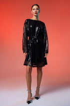 Платье женское выполнено из велюра и прозрачной сетки. Изделие прилегающего силуэта. По горловине выполнен асимметричный вырез со вставкой из сетки. На сетке по горловине и рукаву вышивка. Рукав втачной длинный, зауженный к низу. В модели исправлена ширина рукава в сетку.