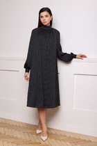 Платье женское нарядно-повседневное полуприлегающего силуэта до талии расширенное к низу. Плье отрезное по талии. Выполнено из креп-шифона. Вырез горловины отложной воротник с подбортами, до талии застежка на обметанные петли и пуговицы. Рукав втачной по низу собран на резинку. от талии юбка платья на трикотажной подкладке. Декором платья служит съемный пояс и принт самой ткани.