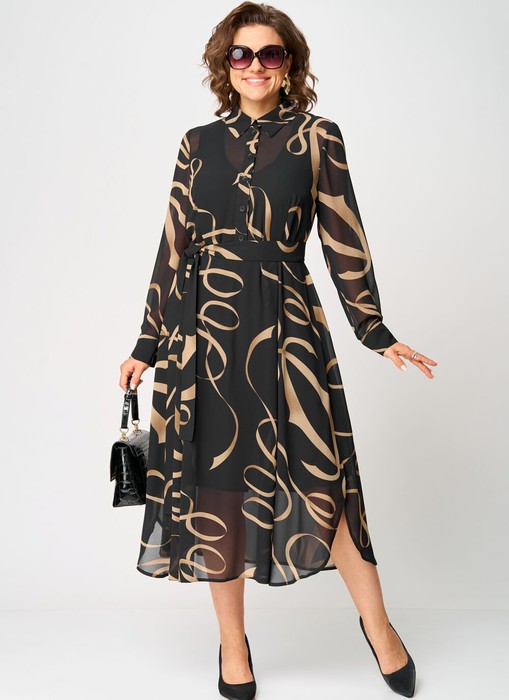 Платье EVA GRANT 7303 черный с принтом