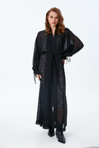 Юбка коническая, с карманом в боковом шве. По линии талиикулиска, с частично-эластичной тесьмойи шнуром из основной ткани. Верхняя часть спишки с центральным швом и декоративной нашивкой. Рукав втачной, с отрезной мягкой манжетой по низу.