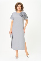Женское трикотажное платье "Веста" выполнено из трикотажной ткани. Платье без подкладки, прямого силуэта с съемным поясом. По спинке и полочке - притачные кокетки. По центру рукава - шов. Горловина платья обработана обтачкой, на плочке пришита декоративная нашивка, по бокам - разрезы. Низ рукава и низ платья обработаны распошивалкой.