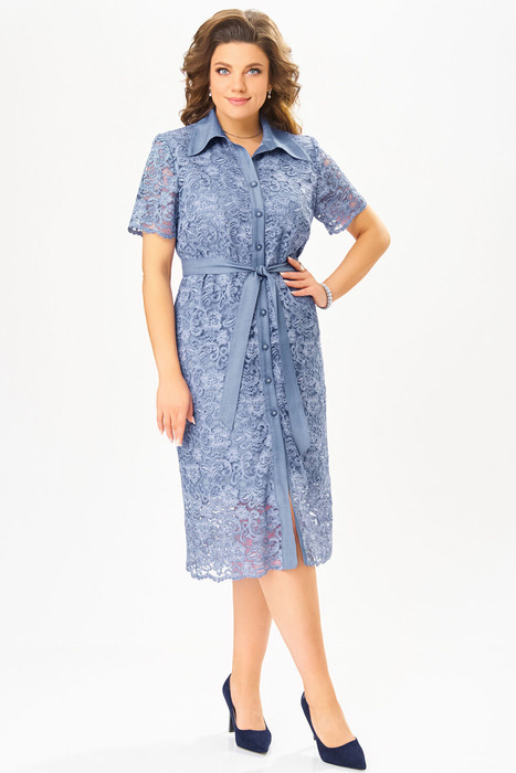 Нарядное платье "Ивка" выполнено из кружевной ткани с джинсовой отделкой. Платье прямого силуэта на подкладке со съемным поясом. Платье с застежкой на петли и пуговицы, планка отрезная, воротник отложной со стойкой рубашечного типа. По полочке - нагрудная выточка, рукав втачной одношовный, по низу изделия и рукавов декоративный край. Платье идеально для любого праздника и для повседневной носки.