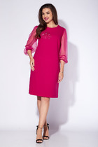 Платье женское полуприлегающего силуэта из шифона на подкладке. Перед платья с нагрудными вытачками; по линии талии вставлена резинка; юбка изделия украшена тремя воланами с небольшой сборкой; рукава втачные с аккуратной сборкой по окату и по отрезной части рукава. Верхняя часть платья имеет подкладку в виде топа на регулируемых бретелях, что обеспечивает комфортную посадку; нижняя часть подкладки - отлетная. Застежка-планка на петли и пуговицы. Платье полностью соответствует заявленному размеру. Пожалуйста, пользуйтесь таблицей замеров готового изделия, чтобы подобрать идеальный размер.