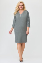 Платье женское прямого милуэта длиной немного выше середины икры, выполнено из льняного полотна с добавленем синтетический нитей стрейч. Горловина круглая, немного расширена к плечевым швам. Рукав цельнокроенный щелевидной формы. Детали кулиски расположены располоны по центру спинки и переда. Шнур,протянутый в кулиски, фиксируется по бокам изделия с помощью фиксаторов. По ререду расположена вышивка. В среднем шве спинки вверху имеется застежка на петлю и пуговицу. В боковых швах имеются разрезы.