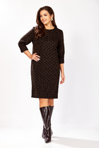 Платье без воротника, с круглым вырезом горловины, с застежкой на потайную молнию в среднем шве спинки. Платье отрезное по линии талии. По лифу переда с рельефами, выходящими из проймы. Спинка со средним швом, по лифу спинки с рельефами, выходящими из проймы. Нижняя часть платья двойная, расширенная к низу. Рукав втачной, короткий, крылышко, двойной. Платье со съемным декоративным поясом.