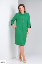 Платье без воротника, с круглым вырезом горловины, застежкой на потайную молнию в среднем шве спинки. Платье отрезное по линии талии. Верхняя часть переда с талиевыми вытачками. Спинка со средним швом, верхняя часть спинки с талиевыми вытачками. Окат рукава присборен. Платье со съемным поясом.