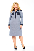 Платье, с застежкой на потайную молнию по среднему шву спинки, без воротника, с фигурным вырезом горловины. Платье отрезное по линии талии. Нижняя часть платья состоит из двух воланов. Лиф переда с рельефами, выходящими из горловины. Лиф спинки со средним швом, рельефами, выходящими из горловины. Рукав втачной, длинный, с отрезной манжетой. Окат и шов притачивания манжеты присборен. Платье со съемным поясом.