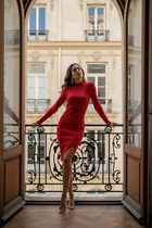 Вязаное женское платье до колена приталенное украсит и создаст соблазнительный образ. На любой праздник корпоратив свадьбу выход в театр клуб и даже вечернее свидание. Платье бодикон в обтяжку по фигуре, как вторая кожа, с разрезом по ноге украшенным пуговицами – красивое дизайнерское решение. Современное, молодежное по длине мини с длинным рукавом.