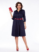 Элегантное женское платье полуприлегающего силуэта, классической длины, отрезное по линии талии со сборкой, изготовлено из натуральной хлопковой ткани. Горловина оформлена рубашечным воротником со стойкой, центральная потайная застежка планки на петли-пуговицы. Перед изделия с рельефами в верхней части и боковыми карманами по юбке, спинка с талиевыми вытачками. Рукава с цельнокроенным манжетом и декоративными пуговицами контрастного цвета. Можно снять пуговицы и ширина рукава по низу увеличится на 3см. В комплекте идет пояс из основной ткани. Платье без подкладки. Модель платья универсальна, его уместно надеть как на работу в офис, так и на праздничное мероприятие, а классический принт в горох сделает ваш образ неповторимым. Платье будет комфортно для любого типа фигуры.