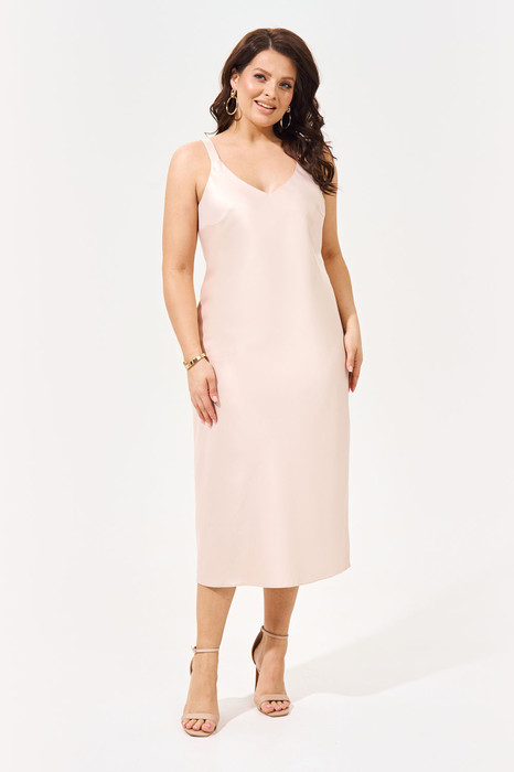 Женское шелковое платье-комбинация на бретелях длины миди. Платье выполнено "по косой" из плотного, держащего форму шелк-сатина без подкладки. В бокой шов вшита потайная молния.
