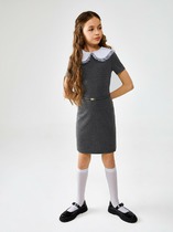 Платье коктейльное для девочки А-образного силуэта, средней длины, с втачными короткими рукавами, круглым вырезом горловины. Застёжка сзади на навесную петлю с пуговицей. Ткань- кружевное полотно на подкладке из кулирного полотна.