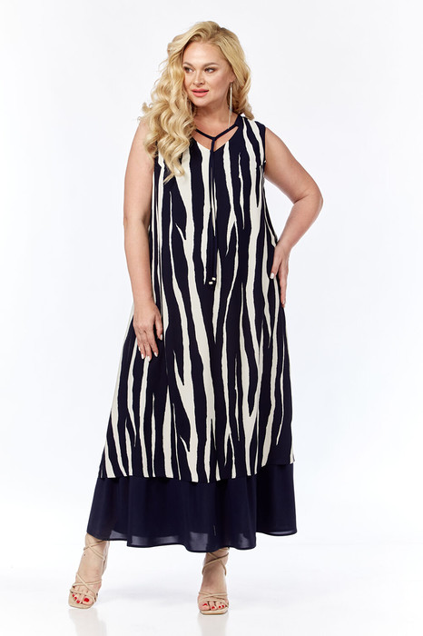 Платье женское нарядное выполнено из легкой плательной ткани, А — силуэта. Горловина с декоративными деталями в виде кулис и завязок. Перед и спинка цельные. Платье на подкладке к которой притачивается широкая рюша.