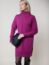 Платье женское прямого силуэта, изготовлено из трикотажного полотна и атласа. Платье отрезное ниже линии талии, со вставкой имитирующей пояс из отделочной ткани, с кулисой и втянутым шнуром. Горловина круглой формы с отделочным кантом. В нижней части платья обработан элемент с эффектом запаха. Обработаны карманы. Рукава втачные, длинные. Спинка разрезная с фигурным низом.