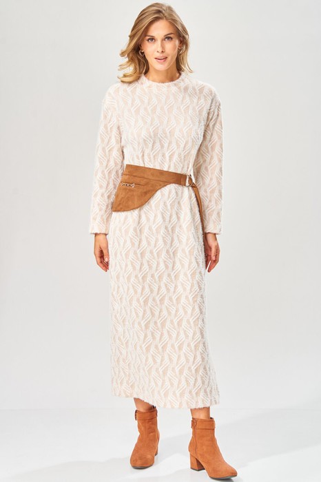 Уютное стильное повседневное платье длиной "в пол" с оригинальным поясом для осенне-зимнего сезона.