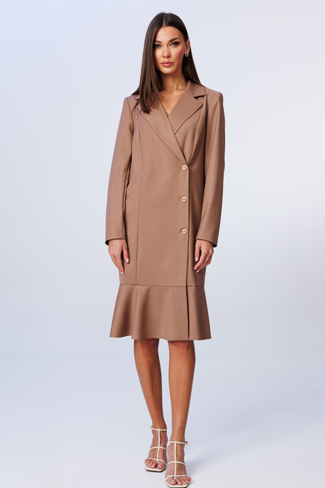 Элегантное платье-жакет с двубортной застежкой и лаконичным воланом.