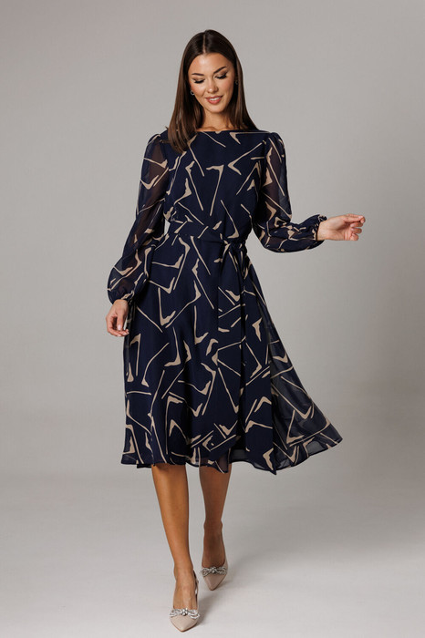 Платье Lars Style 1161 сине-бежевый принт