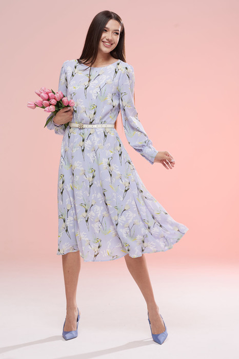 Романтичное платье из шифона невероятной красоты, на подкладке. В нем Вы однозначно будете сиять! По верхней части переда нагрудная и талевая вытачки. По верхней части спинки талевые вытачки. Отрезное по линии талии. Нижняя часть платья по крою «полусолнце». В среднем шве спинки потайная застёжка-молния. Шикарная посадка по фигуре. Длина платья по спинке от горловины до низа 110см. Рукав втачной, одношовный, со сборкой по окату и низу, с притачной манжетой, высотой 8 см, на функциональную застёжку петли-пуговицы. Пуговицы могут отличаться от заявленного на фото. Длина рукава 65,5 см. Декор съёмный ремень подчёркивает изящество фигуры, может отличаться от заявленного на фото. Это стильное платье станет неотъемлемой частью Вашего гардероба. Цвет платья может отличаться на полутон от заявленного на фото.