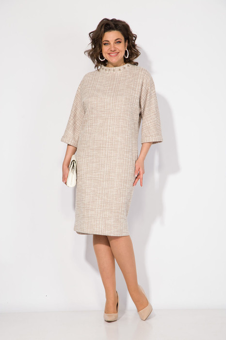 Шикарное платье в стиле «Шанель», лаконичное с ярким акцентом в виде бусин жемчуга по горловине! Модель O-образного силуэта, с цельнокроеным рукавом на притачной манжете с заворотом. В платье присутствуют карманы в боковом шве. Низ фигурной формы с подгибкой. Застежка по горловине спинки на потайную молнию. Этот образ сдержанной красоты и сделает Вас поистине роскошной!