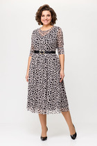 Женственное платье прямого силуэта выполнено из трикотажного полотна. Округлая горловина. Длинный втачной рукав со спущенным плечом. Перед дополнен застроченными складками. Низ ровный, сзади разрез.