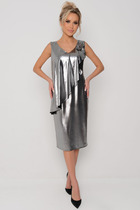 Уникальное вечернее платье, созданное для самых очаровательных леди. Оно состоит из двух частей: облегающего платья и накидки из сетки, расшитой пайетками. В сочетании с туфлями-лодочками этот наряд станет настоящим шедевром! Обратите внимание, что накидка не снимается.