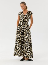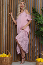 Платье с эффектными рукавами не останется незамеченным. Вырезы на плечах придадут образу изысканности и кокетливости. Низ платья украшен воланом из шифона с цветочным принтом.