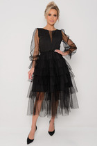 Пополните свой гардероб стильным и эффектным платьем из штапеля с ярким принтом. Это универсальный и удобный наряд, который идеально подходит для теплых дней. Платье имеет классическую округлую горловину, придающую образу аккуратный вид. По бокам расположены разрезы.