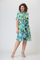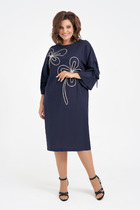 Нарядное женское платье из фактурного трикотажа в люрексовую точку прекрасно подойдет для рабочих будней, а также торжественных мероприятий. Перед и спинка изделия с центральным и таливым швами, застроченные встречные складки на лифе служат вытачками, а в юбке дают дополнительный объем и необычный силуэт. Платье заужено к низу. Передняя часть удлинена и имеет разрез. Рукав "летучая мышь" цельнокроеный 3/4, с пристроченной манжетой. Горловина лодочка с разрезом, который украшает цепочка вставленная в блочки.