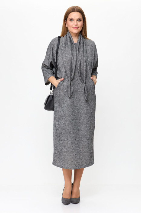 Актуальное повседневное платье из мягкого трикотажа — футер трехнитка с блеском. Комфортный силуэт, который мягко сядет по фигуре. Достаточно свободное по бёдрам и по груди. Платье с округлой горловиной, цельнокроеным рукавом «летучая мышь» и нижней притачной частью длиной 7/8. Перед цельный с рельефными нагрудными выточками, заканчивающимися в боковых швах и двумя карманами. Спинка с центральным швом и разрезом по низу. В комплекте идет съемный шарф из основной ткани, который украсит платье и согреет Вас. Данное платье прекрасно сочетается с разной по стилю обувью. Если любите платье больше по фигуре, то смело можете брать на размер меньше. Длина изделия по спинке 121 +-1 см, длина рукава от горловины 60 см. Изделие подойдет на рост 170 см.