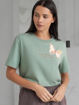 Vilatte Футболка с принтом свободная эластичная из премиального хлопка D49.136 с