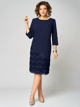 Женское платье Х-силуэта выполнено из атласа «леопард» длиной миди. По переду нагрудные вытачки. Спинка со средним швом. По линии талии настрочена кулиса в которую вдет декоративный шнур, имеется фиксатор и наконечник.V-образный вырез горловины. Рукав втачной одношовный с притачной манжетой. Центральная застежка на 7 пуговиц и петель.