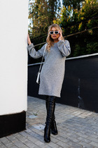 Эффектное двубортное платье длиной миди из облегчённого денима полуприлегающего силуэта. Линия плеча приспущена, рукав втачной три четверти с манжетой и патой. Горловина обработана обтачкой с  V-образным вырезом. Линия талии акцентирована притачным поясом. Имеются карманы в боковых швах. Изделие застёгивается на кнопки. Без подкладки.