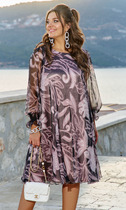Платье макси прямого силуэта с V-образным вырезом, отрезное по линии талии. Горловине с имитацией чокера, застёжка на петлю и декоративную пуговицу. Рукав немного приспущен, по низу собран на манжет с петлей и пуговицей. Изделие на подкладке. Фурнитура может отличаться от заявленной на фото.