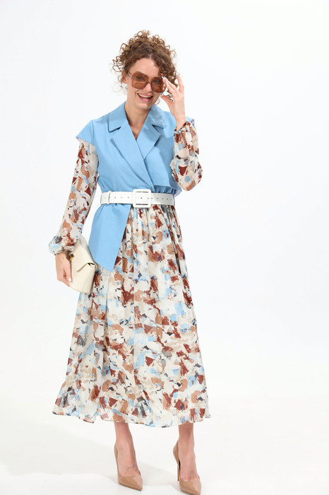 Платье NIKVA н904-4 голубой+акварель