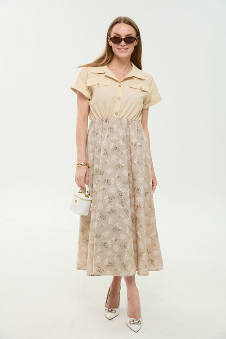 Платье NIKVA н969-4 песочный и песочные цветы