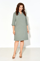 Платье приталенного силуэта на подкладке из итальянского шифона. Горловина V-образного выреза с застежкой на петли и пуговицы, с воротником стойкой. На застежке отделочные воланы к плечевому шву. По отрезной линии талии сборка,а в нижней части платья притачной волан. Рукав на манжете со сборкой по линии оката и низа.