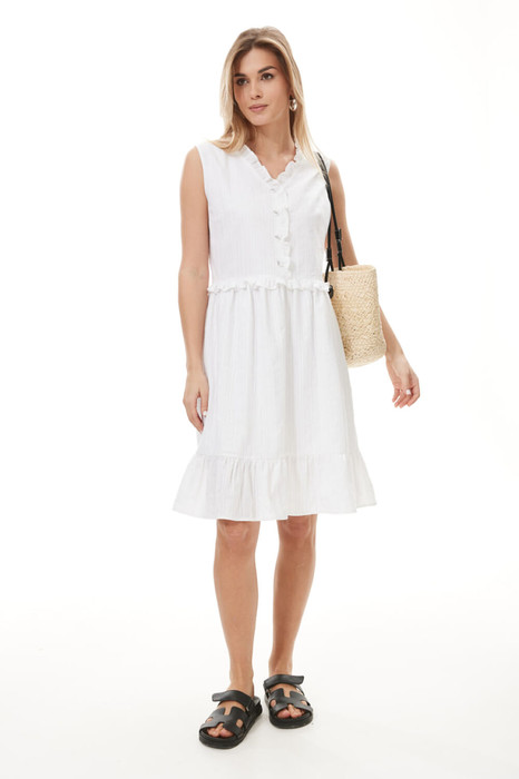 Изящное модное платье из итальянского хлопка. Модель свободной формы, по линии талии вставлена рюша из основной ткани, расширенное к низу. Платье отрезное чуть выше линии талии с двумя ярусами воланов.