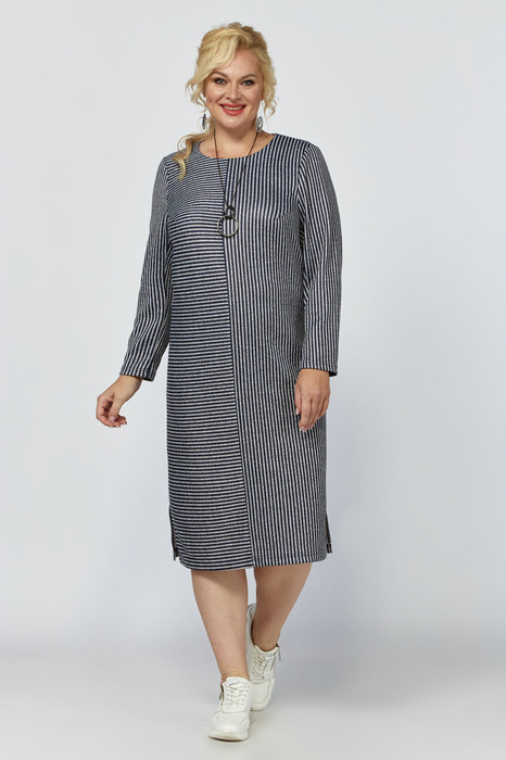 Трикотажное женское базовое платье длиной чуть ниже колена с двумя боковыми разрезами отлично впишется в гардероб современной девушки и станет основой для множества стильных образов. По переду платья есть средний шов. Игра полоски в ткани подчеркнет индивидуальные достоинства фигуры. Рукав длинный. Дополнив платье аксессуарами, Вы получите сексуальный вечерний наряд или праздничный коктейльный вариант. За счет прямого кроя платье подойдет на любой тип фигуры. Бусы в комплект не входят.