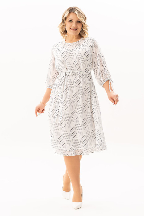 Эффектное платье из шифоновой ткани. Горловина овальной формы, нагрудные вытачки направлены от бокового шва к центру груди, спинка со средним швом и каплевидной застежкой на пуговице. Низ платья обрамляет волан, наполняя образ воздушной многослойностью. Рукав втачной, одношовный, низ рукава собран на эластичную декоративную тесьму. Платье на трикотажной подкладке. Нарядное платье, в котором Вы будете выглядеть женственно и романтично. Платье скроет все неровности фигуры! К платью прилагается съемный пояс. Платье выручит при выходе по любому случаю.