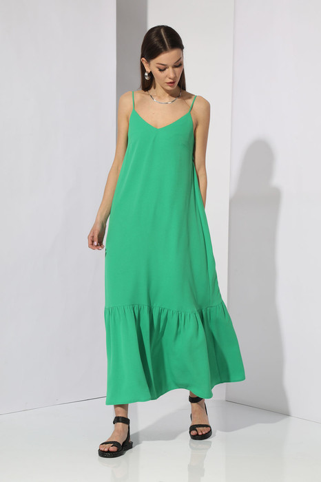Платье женское А-образного силуэта, на бретелях, с открытой спинкой. Выполнено из ткани с содержанием вискозы, плательного ассортимента.