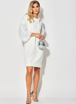 Интересное плать из премиального трикотажного полотна, с воротником поло и застежкой-молнией по центру. Контрастная отделка, А-силуэт, разрезы в боковых швах. Рукав втачной с контрастной отделкой-планкой по низу.