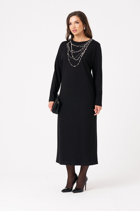 Женское платье из поливискозного трикотажного полотна сочетает комфорт и стиль. Модель выполнена с учетом современных тенденций и идеально подходит для повседневной носки. Перед украшен двумя нагрудными вытачками и дизайнерской вышивкой в виде бус, что придает образу оригинальность. Спинка со средним швом и двумя талиевыми вытачками обеспечивает аккуратную посадку, а потайная застежка-молния в среднем шве облегчает надевание. В боковых швах расположены разрезы, добавляющие легкости и свободы движений. Расширенная горловина создает эффект открытой линии декольте, а длинные втачные рукава делают модель универсальной для прохладной погоды. Это стильное и удобное платье длинной макси и отлично подойдет для повседневных образов и неформальных мероприятий.