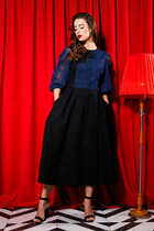 Платье: Дл.спины от высшей плечевой точки до талии - 45см, Длина изделия - 102,5см, Длина изделия со стойкой - 109см, Длина рукава - 62см, Ширина плеча - 13см, Ширина по бедрам - 60см, Ширина по груди - 56,5см, Ширина рукава - 19,5см