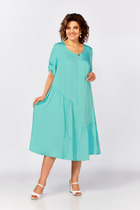 Детали: приталенный силуэт, цельнокроенный воротник-стойка, декоративный ассиметричный запах с узлом, неглубокий разрез в левом боковом шве под деталью запаха.